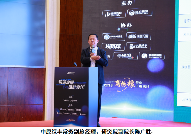 中原绿丰常务副总经理、研究院副院长陈广胜以《食品行业微利时代新引擎——环保运维降本创利之道》为题,分享食品冷链企业环保运维、降本增效的实用方案。