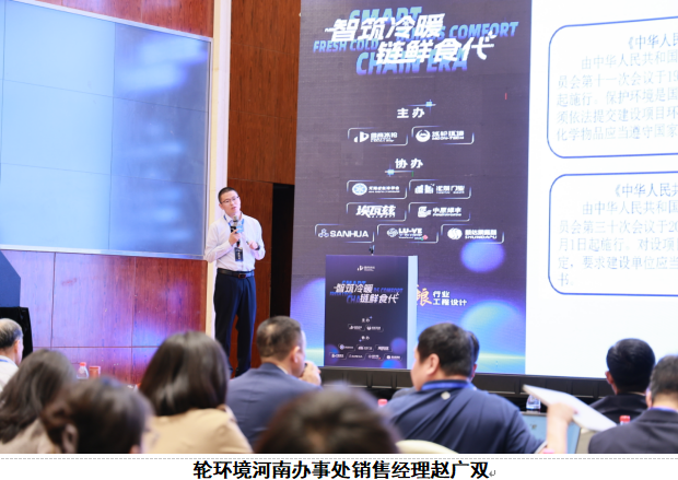冰轮环境河南办事处销售经理赵广双作《低碳节能新技术、新装备分享》,聚焦冷库高效节能、低碳运行核心需求,详解新一代制冷装备技术优势与应用场景,为企业节能降碳提供实践路径。